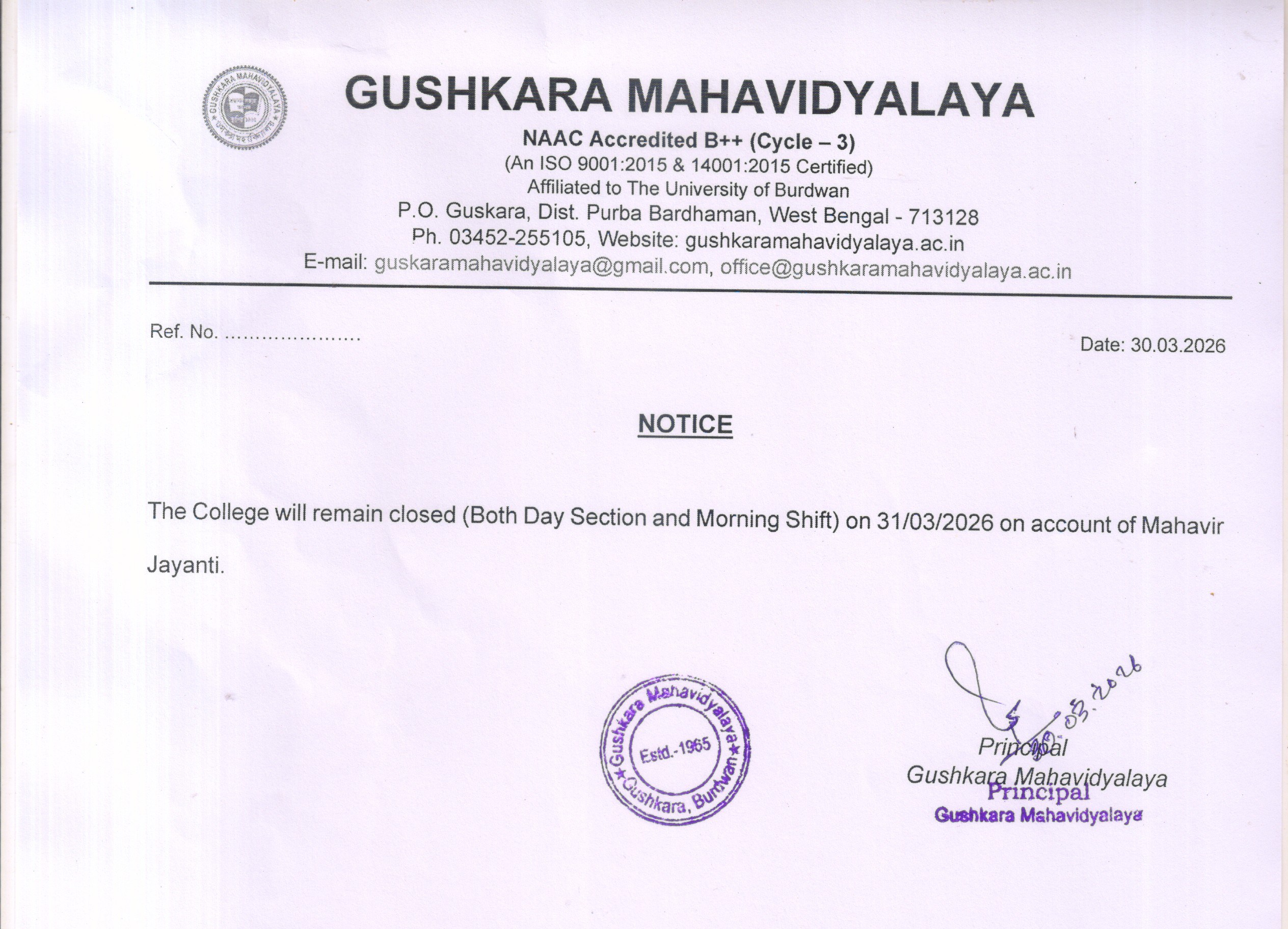 Email Id: guskaramahavidyalaya@gmail.com